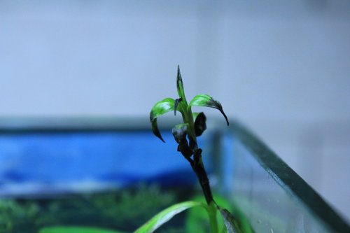 似乎還沒完全適應水上生活,常長出新芽又枯掉,反覆循環,此外我並沒有特別在葉子上灑水,完全讓他自由成長。