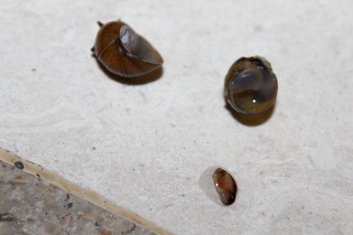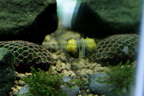 有2隻元老級的蜜蜂角螺伴隨著我入門水族這條路,經過2年多的時間,發現牠們都壽終正寢了