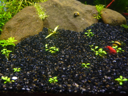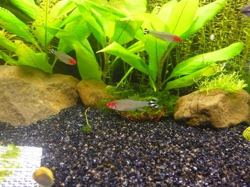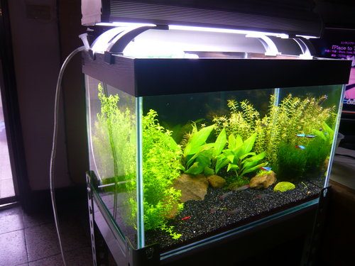 與第一張圖相比前約1個禮拜前,之後做了點小改造,挪動水草位置順便修剪。注意到了嘛!前景的矮珍珠已正式宣告絕跡(可惡的紅鼻