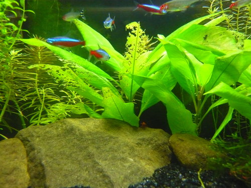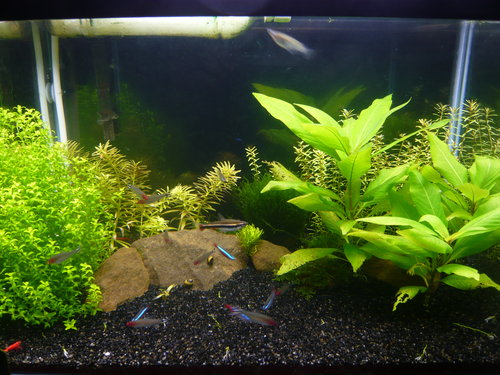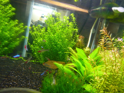 ,顯然小弟程度還太低了。水草的成長狀況各不相同,導致有的水草頻頻修剪,有的卻成長遲緩,造景還有待改進!不多說,賞圖。