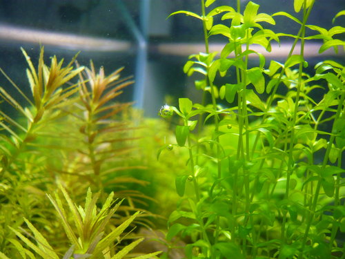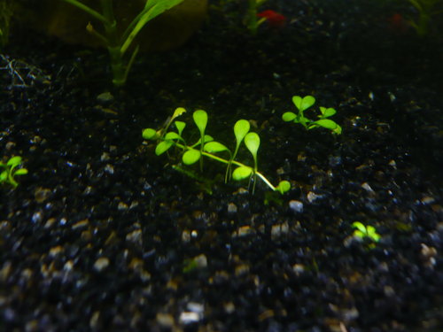 矮珍珠一直到近日才開始有匍匐現象,葉形大小跟之前相比大了很多,推斷已經從以前不營養恢復了生機,期待它爬滿成為草皮的日子到來