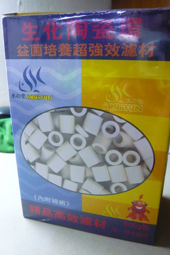 白棉可以放在出水口的地方,讓水流流出到魚缸的時候再過濾一次,瓶蓋的地方也可塞一個再把瓶蓋稍微轉開,多一個出水的地方(萬一水流出的速度很慢可以考慮),抽水管的地方若洞口開太大也可放一塊把它塞住,免得有生物跑進去培菌空間,剩下的空間就塞滿陶瓷環吧(不用擺太整齊,讓水流可以任意沖洗陶瓷環),白棉功能多多,將來很髒的話只要換掉白棉就好,陶瓷環繼續擺著(可別看它髒髒的就一直洗,那是培菌的必要過程)。